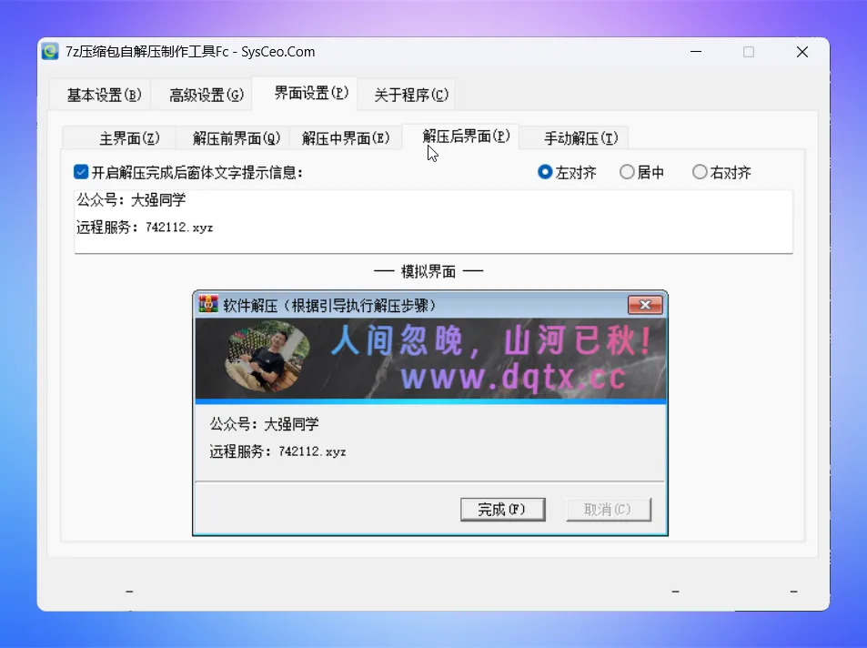 建议把所有的界面设置好,点击保存配置,后续制作自解压文件时,第一时间在基本设置里导入配置