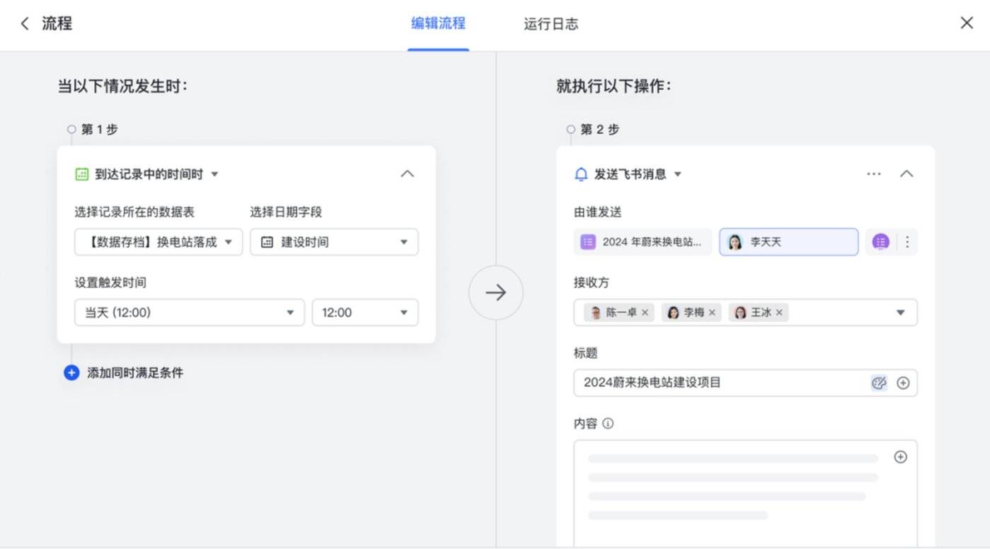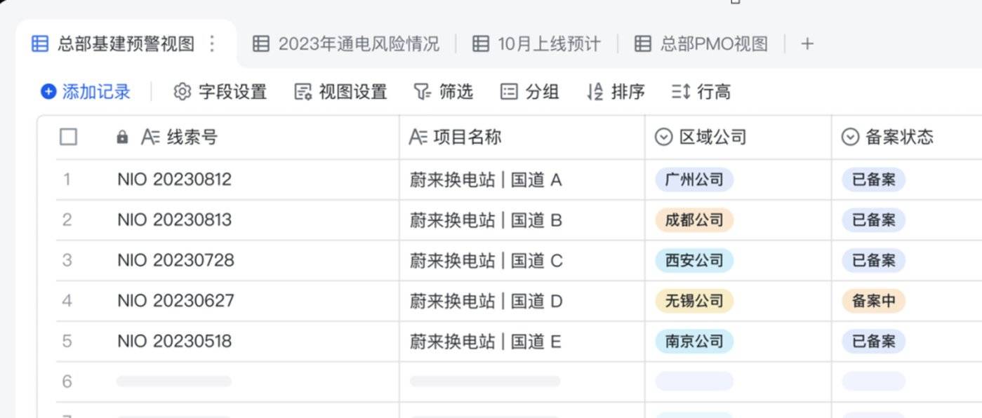 现在他们用得挺好,是整个公司的标兵。我们的换电站遍布全国 48 个区域,包括拉萨,包括乌鲁木齐,每一个换电站都是投资几百万的一个项目,如果没有飞书多维表格,我觉得是做不到的。