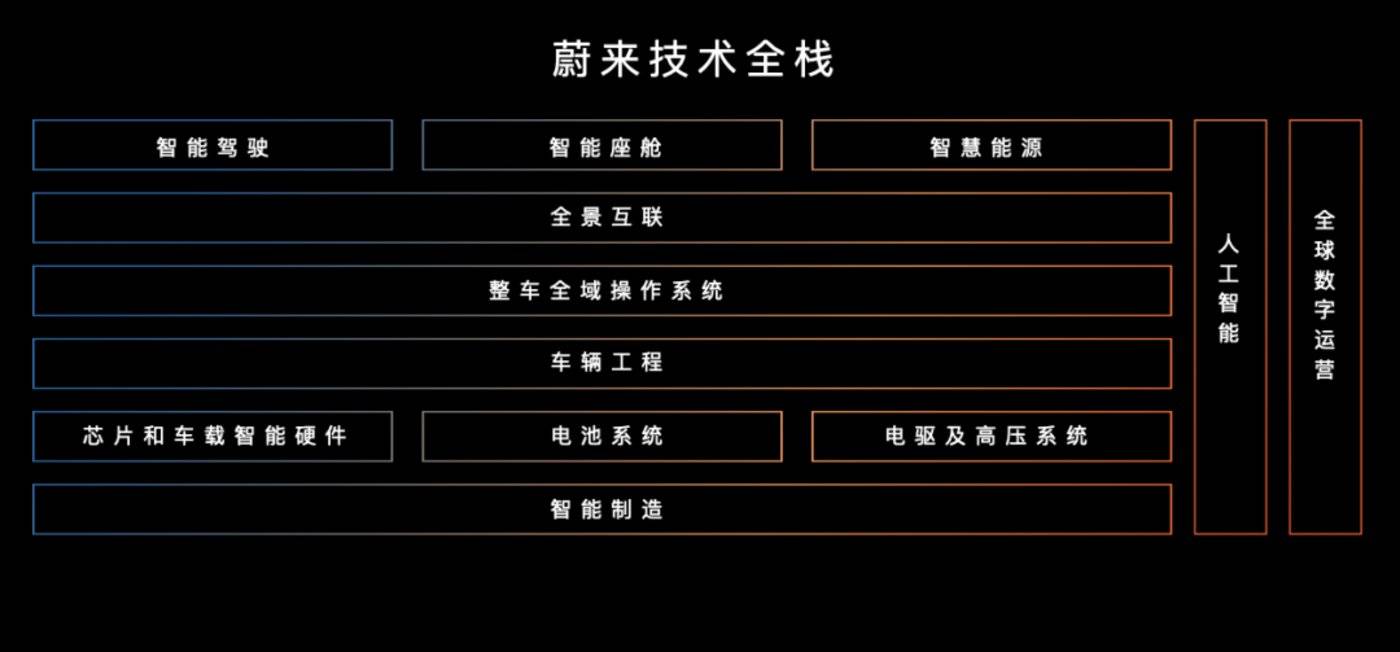 首先我们所在的行业就是智能、电动、汽车三个大的行业一起在变革。智能还包括软件、硬件。我们的产品服务社区,我们的商业模式也是涵盖多方面。而且我们的业务覆盖到不光是蔚来一个品牌。我们的平台已经发布了两代平台的产品,即将交付第三代平台的产品,还有多区域,蔚来已经在全球 7 个国家提供产品和服务。