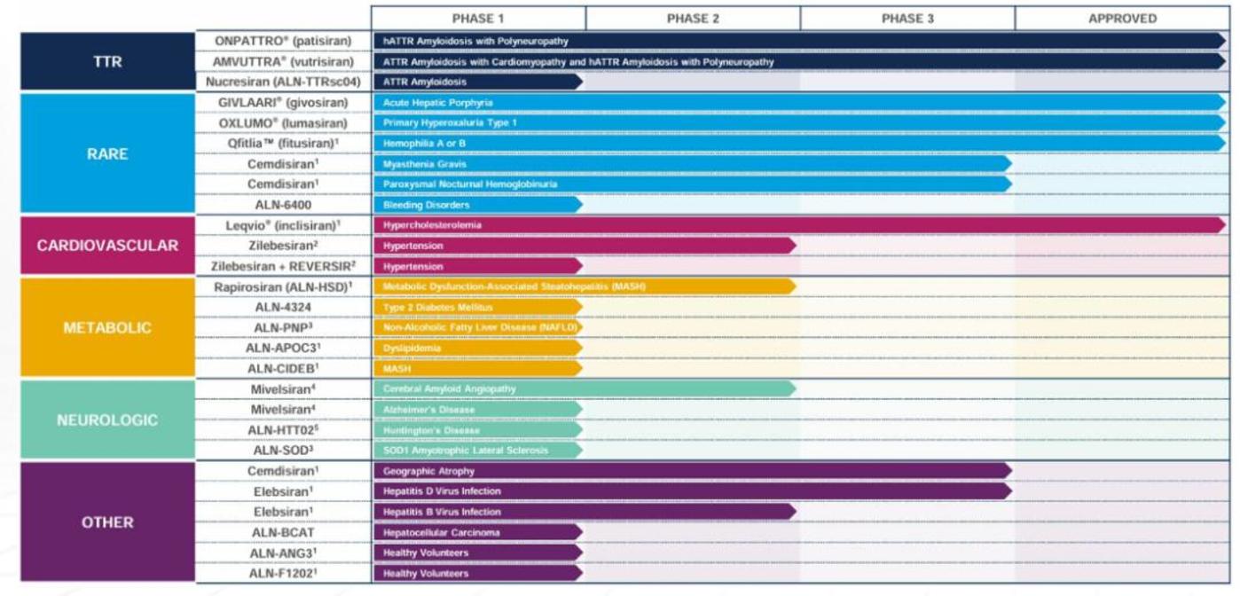 作为 RNAi 疗法研发的领军者,Alnylam 无疑是三巨头中的 「领跑者」,其高效研发体系与技术迭代能力构筑了核心竞争力。