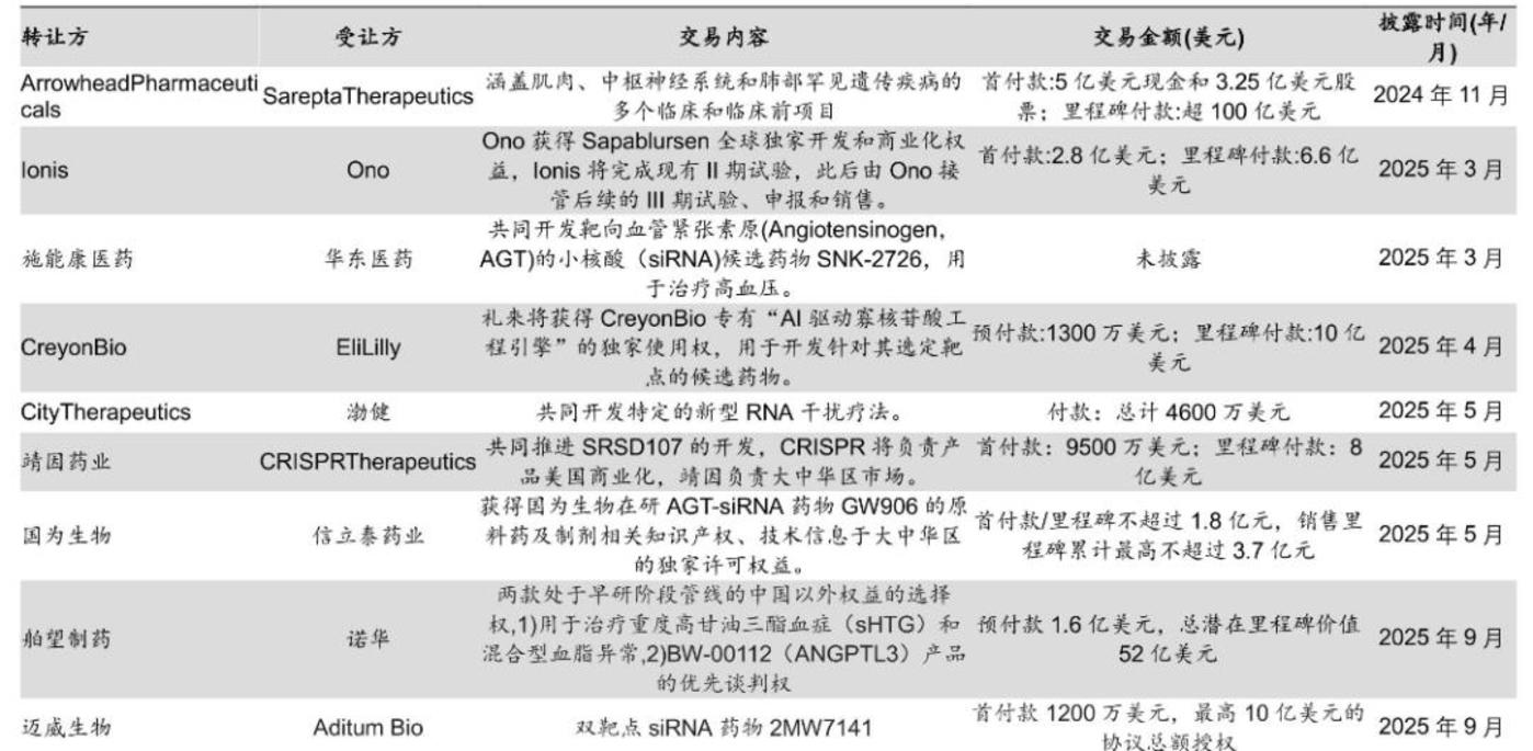 图:小核酸药物近一年重点 BD 一览,来源:德邦证券