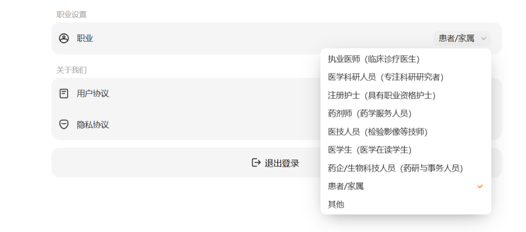 百川智能的“ 百小应”,很容易让人对比前段时间阿里推出的“ 蚂蚁阿福”。“ 趣解商业” 注意到,相比阿福的“ 健康管家” 定位,百小应更像是一款医学辅助工具,除了帮患者和家属解决问题,还面向广大的医护工作者;用户在登录时需选择职业,如药企研究员、护士、执业医师等。