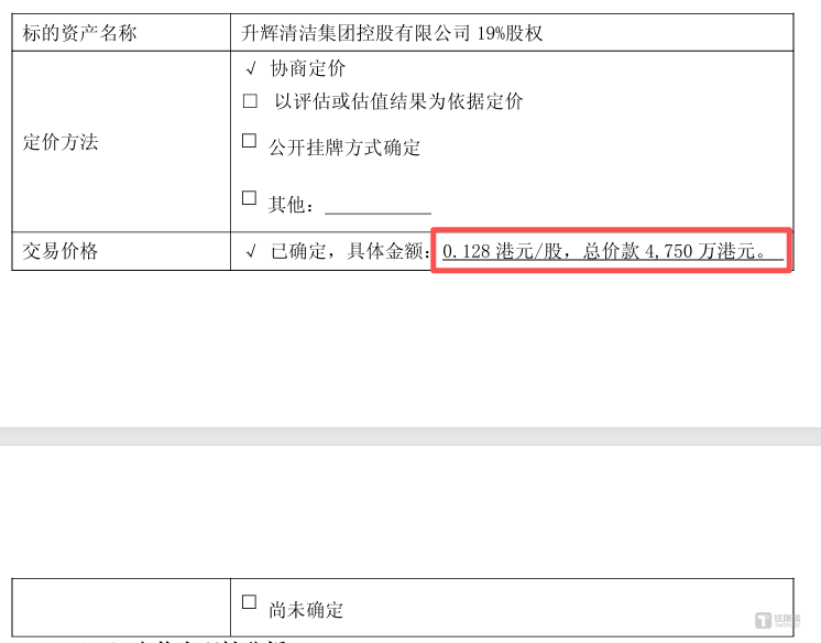 令人费解的是,华立股份给出的收购定价逻辑。公告显示,本次收购价为 0.128 港元/股,总对价 4750 万港元。这一价格不仅较升辉清洁 2025 年 6 月 0.25 港元的配售价格折让 52.8%,更显著低于现股价 0.81 港元/股 (截至 1 月 19 日收盘),相较于收购价打了 2 折。