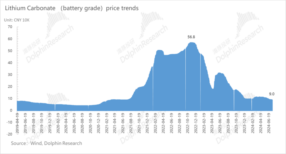 即使考虑在极端情况下,碳酸锂极致降本到 5 万元/吨 (几乎是碳酸锂历年以来的历史最低值),以及按照碳酸锂之前结算价 15 万~20 万元/吨计算,以该价格带平均带电量 56kwh 计算,留给纯电车型极致降本的空间也不过仅有 0.4 万~0.7 万元,而这个降本力度还不及纯电版本与增程版本的价差,价差问题会仍然存在。