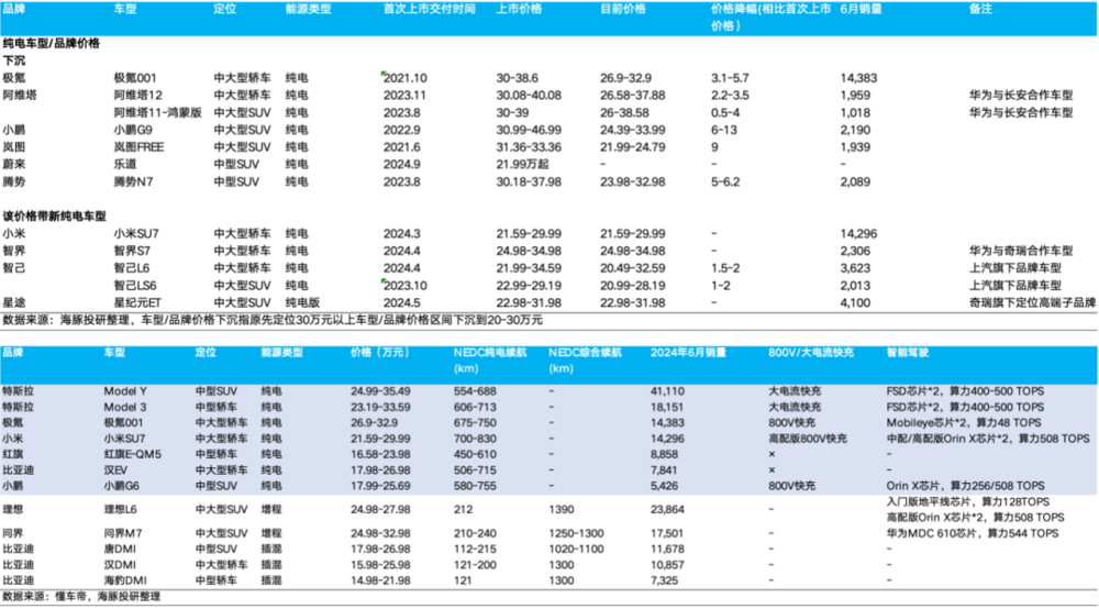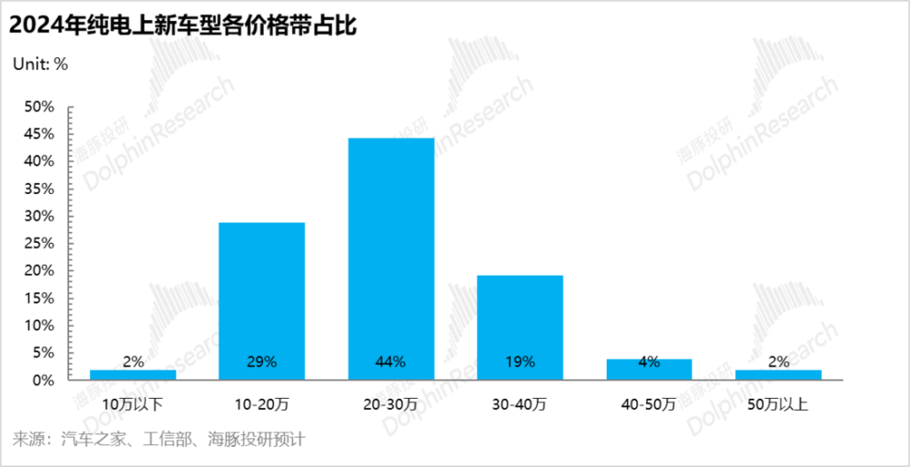 但 20 万~30 万元带上,以前是特斯拉的绝对主场,本身渗透率也比较高,也是最卷的,因为本身全域 800v+标配智驾产品集中在这个区域,新车推量占比也高,高端品牌价格下沉也会先行沉到这个价格带上。