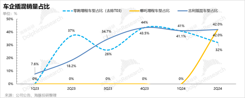 单车价格位于此的车企也意识到了插混在此价格带销量和毛利的双红利,纷纷开始转战插混领域,在 2023 年初就开始陆续推出增程/插混车型,该价格带的目前的插混车玩家仍然以比亚迪、长安、吉利、零跑汽车为主。