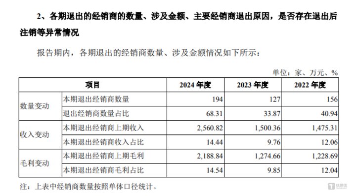 对此,北交所也要求百瑞吉说明经销商进行市场拓展的具体模式,报告期内单体合作经销商增减变动较大的具体原因,是否存在退出后注销的情况及具体背景,经销商的市场推广活动是否存在合规性风险,发行人经销渠道是否稳定。