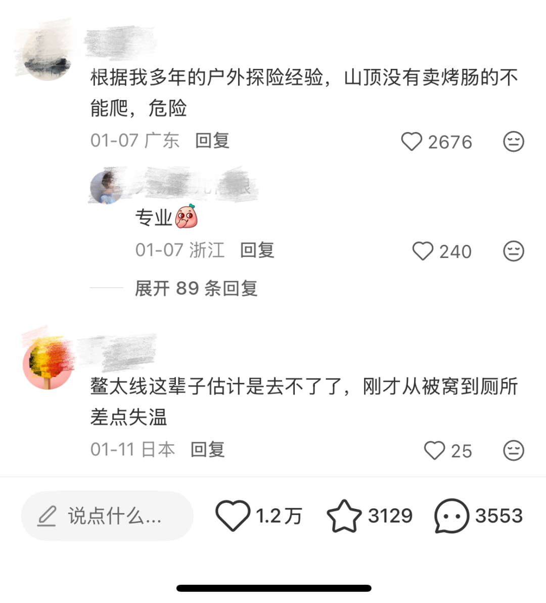 甚至有人用 AI 自制文字游戏,足不出户就能在家中穿越鳌太线,而 「失温」「重装」 等专业词汇也迅速普及。与此同时,是所有内容在社交媒体语境中的必然经历,鳌太线的传说也迅速从一个个具体的故事和人,转向一种叙事方式和无数个梗。