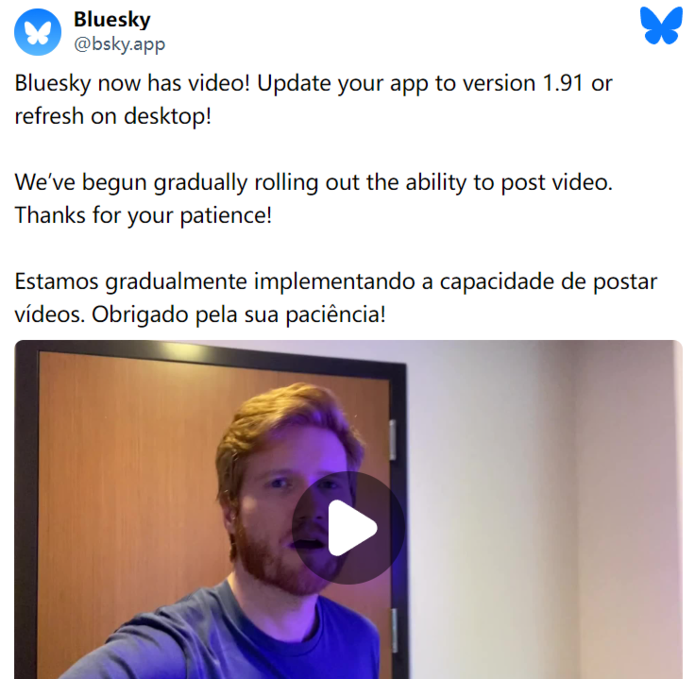 首先,作为一个类似微博的社交平台,目前 Bluesky 的功能发展还有上升的空间,就在 X 被禁之后,Bluesky 才上线了用户上传视频的功能,用户可以在 Bluesky 的 PC 端分享长达 60 秒的视频。