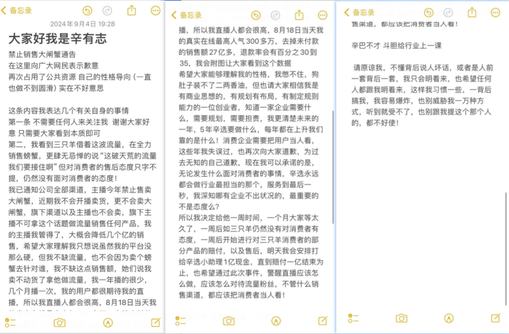 于是辛巴决定 「给行业上一课」,哐当甩出一张长文。