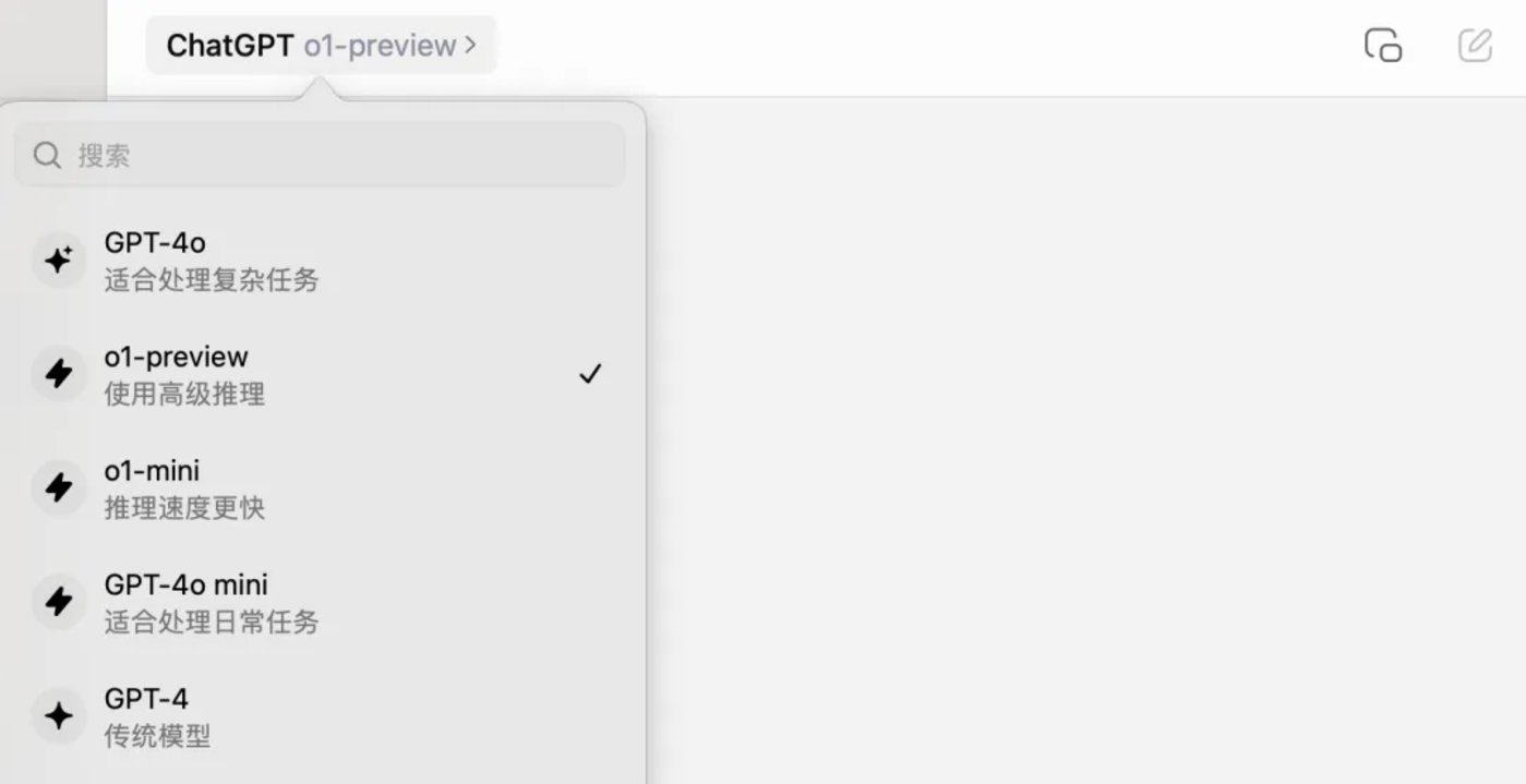 功能方面,目前的 o1 模型还不能支持所有的功能,比如理解图片、生成图片、解释代码、网页搜索等。所以,用户现在只能用它来进行基本的对话。