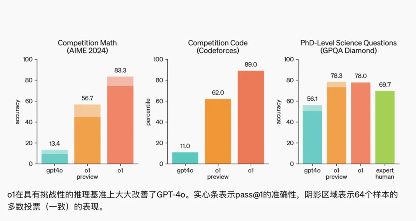 当然,为支持这些复杂的思考任务,o1 还用上了一些特别优化的算法、架构。这些技术让它更快、更准确地解决问题,提高了它的整体能力。