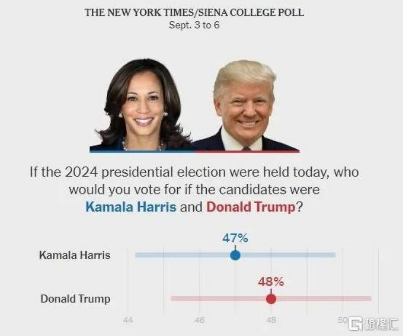 从结果上看,特朗普的支持率跌了,而哈里斯则追上了特朗普。