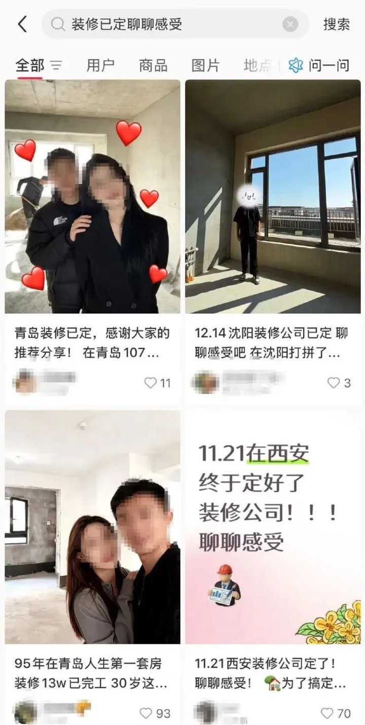 2025 年底时,各大官媒曾报道过小红书上装修帖标题格式、内容结构高度雷同,即便显示地址在北京、上海、广州、武汉、成都等不同城市,主角却全是同一对夫妻,笑容也是僵硬得像 P 上去的。