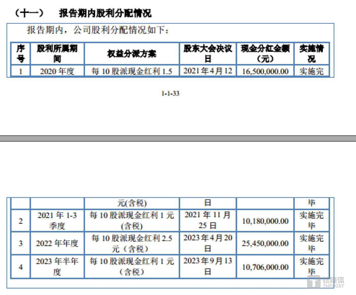 2020 年-2022 年和 2023 年上半年,方正阀门的现金分红情况具体如下: