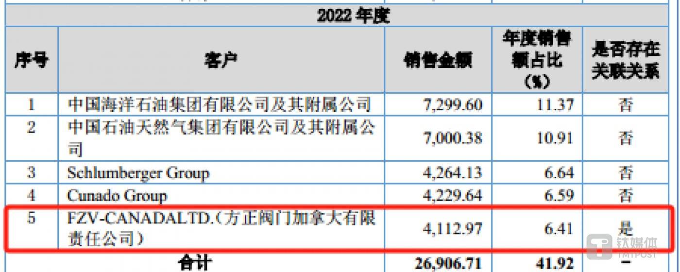 钛媒体 APP 注意到,在方正阀门的前五大客户名单,有一位客户特别值得关注,它就是 FZV-CANADALTD.(方正阀门加拿大有限责任公司,下称 「方正加拿大」)。