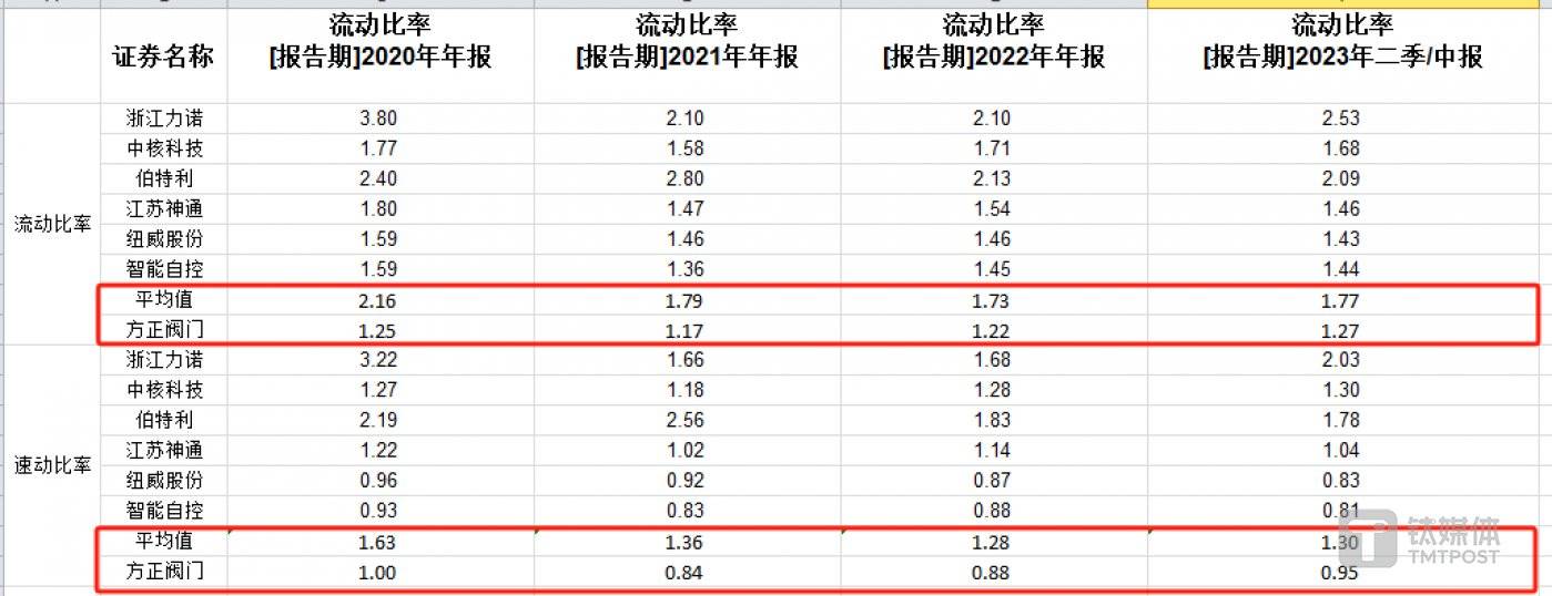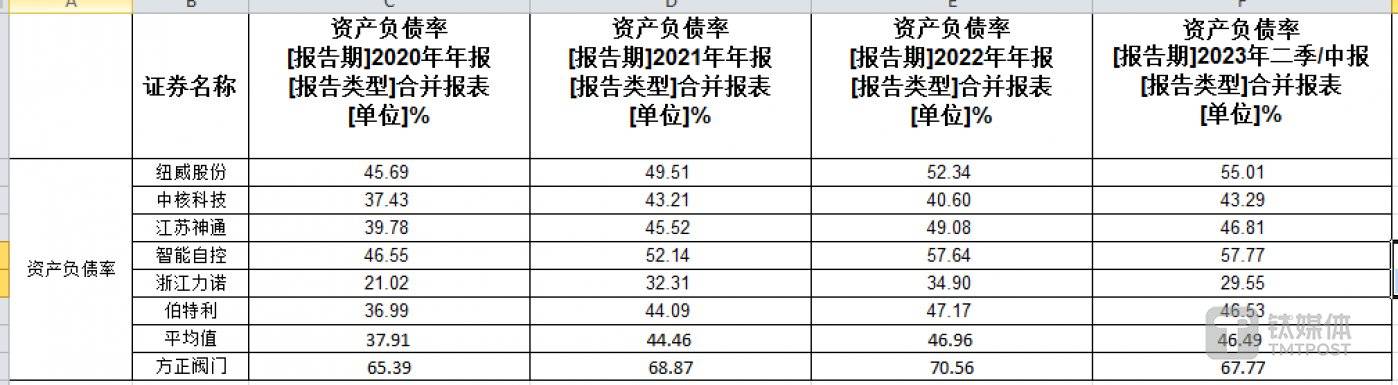 钛媒体 APP 注意到,方正阀门之所以要募集如此多的资金用于补流或与公司的债务有关。方正阀门在申报稿中披露,其可比公司分别为浙江力诺、中核科技、伯特利、江苏神通、纽威股份、智能自控,但却未披露上述公司的流动比率、速动比率、资产负债率的情况。