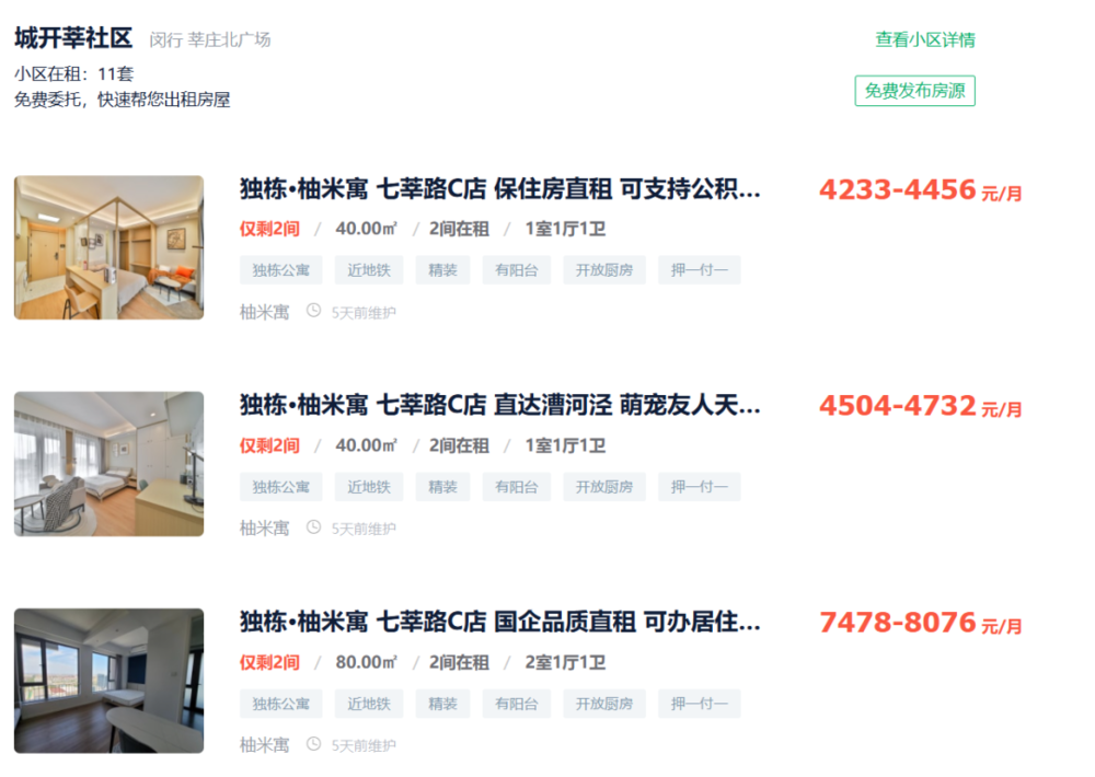 随申办 app 关于保租房的房源展示、申请入口,包括各位如果打开贝壳链家这类中介机构,都可以非常方便接触到这类房源。