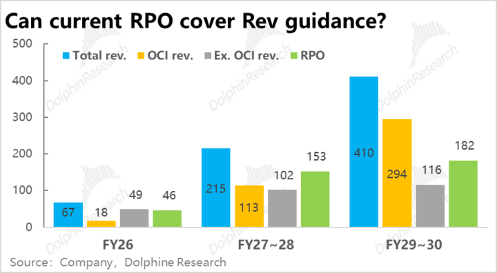 b. 可以看到,对 FY26~28 三年,预期的 OCI 收入规模完全可以由现有 RPO 覆盖,确定性相对高。