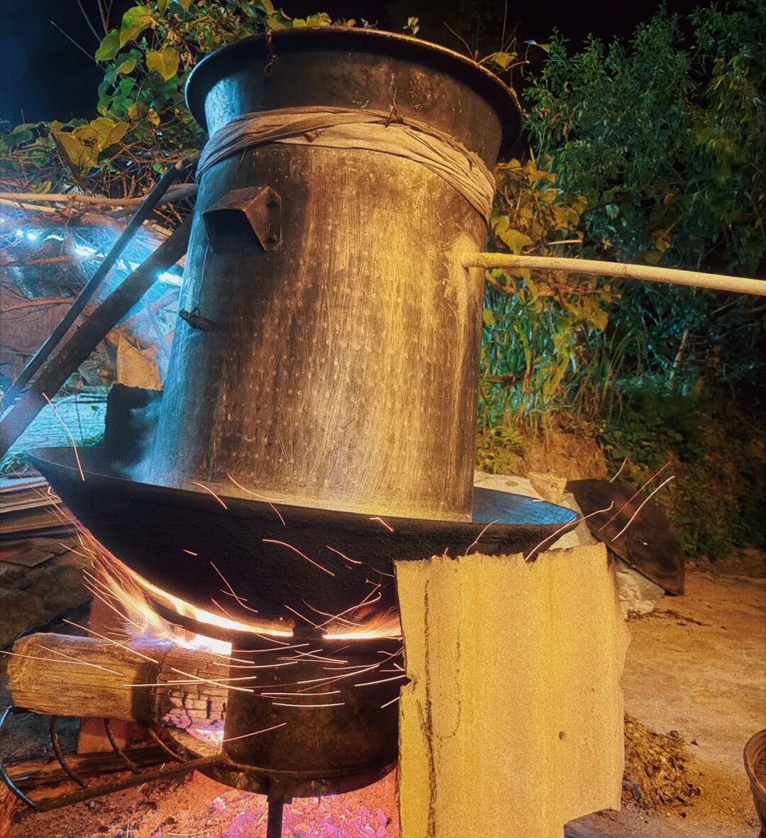 在普洱、怒江等地,每年,每个家庭都会自己酿酒,他们叫烤酒。原材料很单纯,就是自家种的玉米 (苞谷)、苦荞等粮食。先把玉米颗粒晒干,然后用大锅煮熟,装桶里密封发酵,再放到蒸笼里隔水蒸馏。粮食酒顺着管子会流出来。一般一个家庭,每年会酿 2-300 斤左右。如果家里有喜事要办酒,比如乔迁和结婚,多的会酿 1000 多斤。