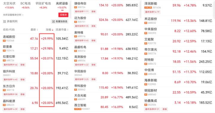 今日涨停与大涨的名单,恰好是一份中国太空光伏产业核心玩家的分布图。长三角光伏军团的股价表现,直接体现了市场对其技术储备与战略卡位的重新定价。
