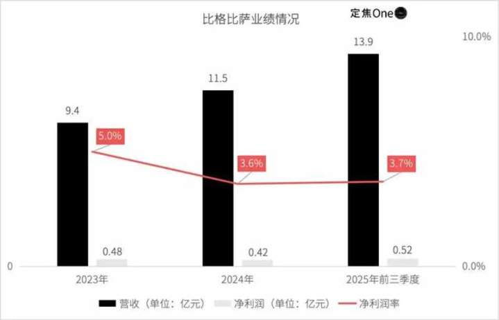 2023 年至 2024 年,比格比萨营收从 9.4 亿元增至 11.5 亿元,同比上涨 22.3%,但净利润从 4751.8 万元下滑至 4173.7 万元,降幅达 12.2%,业绩呈现出典型的 「增收不增利」。
