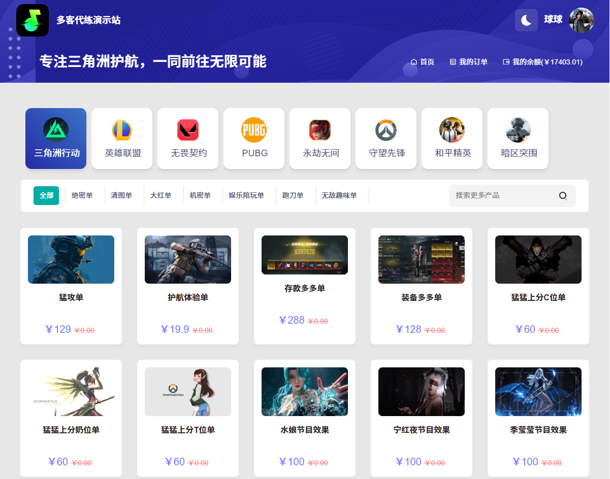 三、中小型网络公司:本系统支持工作室入驻模式,无打手也可以运营的平台型。