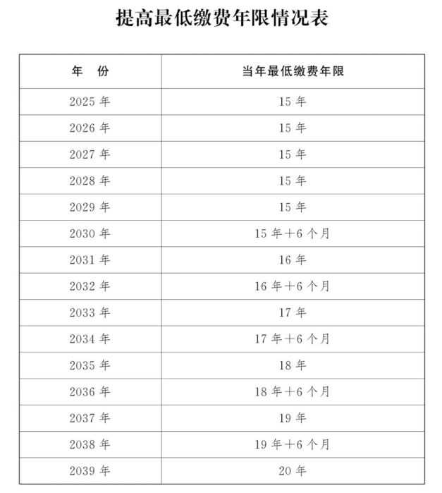 人力资源和社会保障部副部长李忠 9 月 13 日在十四届全国人大常委会第十一次会议专题新闻发布会上表示,随着法定退休年龄的延迟,按月领取养老金的最低缴费年限也相应作了调整,从目前的 15 年逐步提高至 20 年。