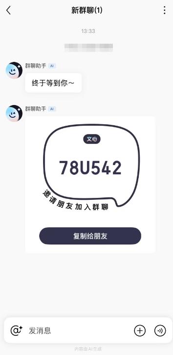 然后,将群信息复制发送给朋友,即可让朋友加入文心 APP 群。