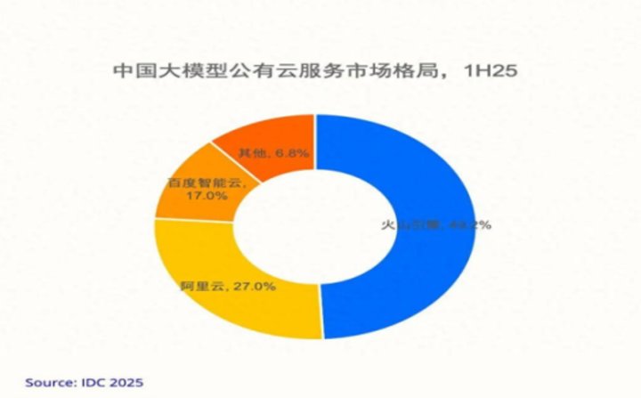 但如果把目光聚焦到 MaaS 细分市场,火山引擎的表现堪称 「降维打击」。IDC 数据显示,2025 年上半年,火山引擎在大模型公有云服务调用市场的份额达到 49.2%。