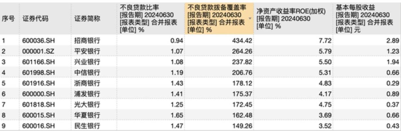 拨备覆盖率方面,招商银行拨备覆盖率高达 434.42%,平安银行、兴业银行、中信银行拨备覆盖率均超过 200%,分别为 263.26%、237.83%、206.76%。