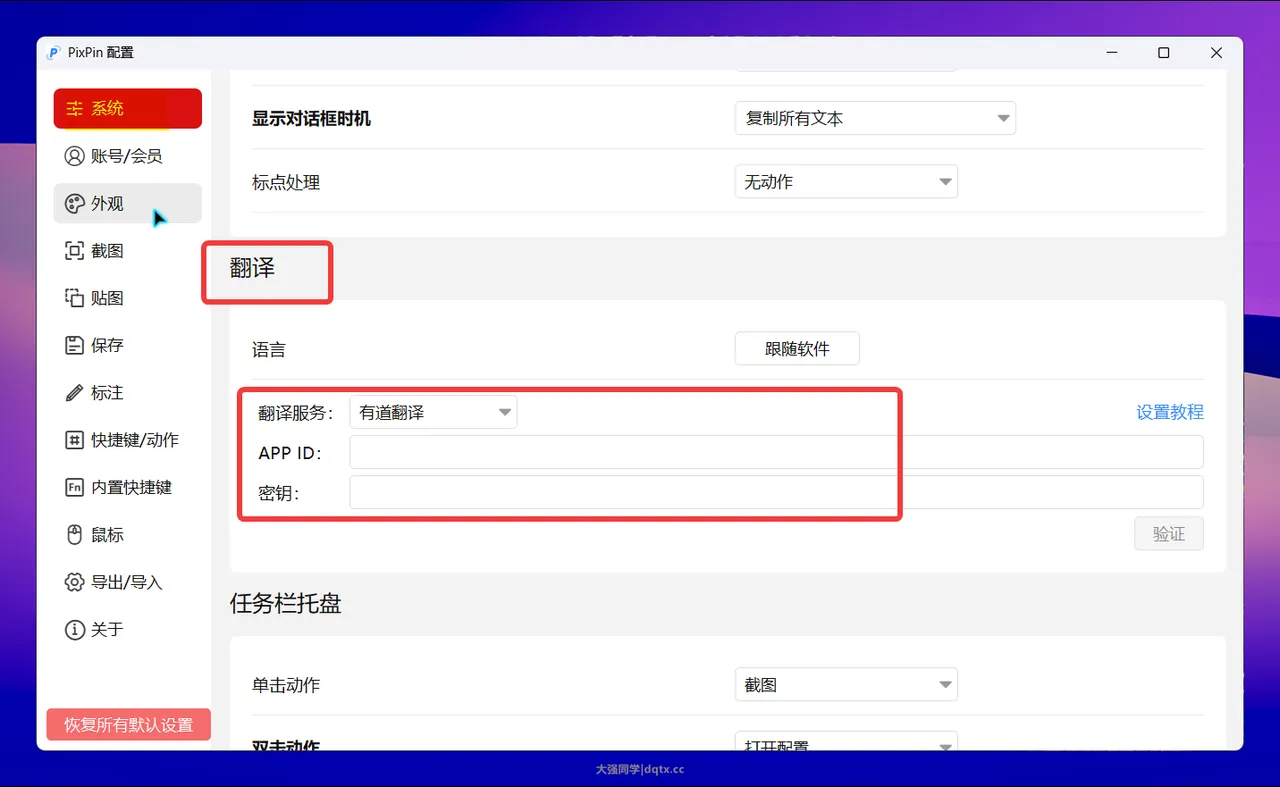 翻译设置 | PixPin 截图/贴图/长截图/文字识别/标注