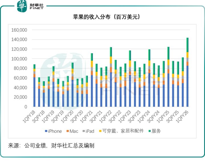 2026 年 1 月 29 日晚,苹果 (AAPL.US)发布了截至 2025 年 12 月 27 日止的 2026 财年第 1 财季业绩,多项核心财务指标同比大幅增长,创下史上最佳季度表现。