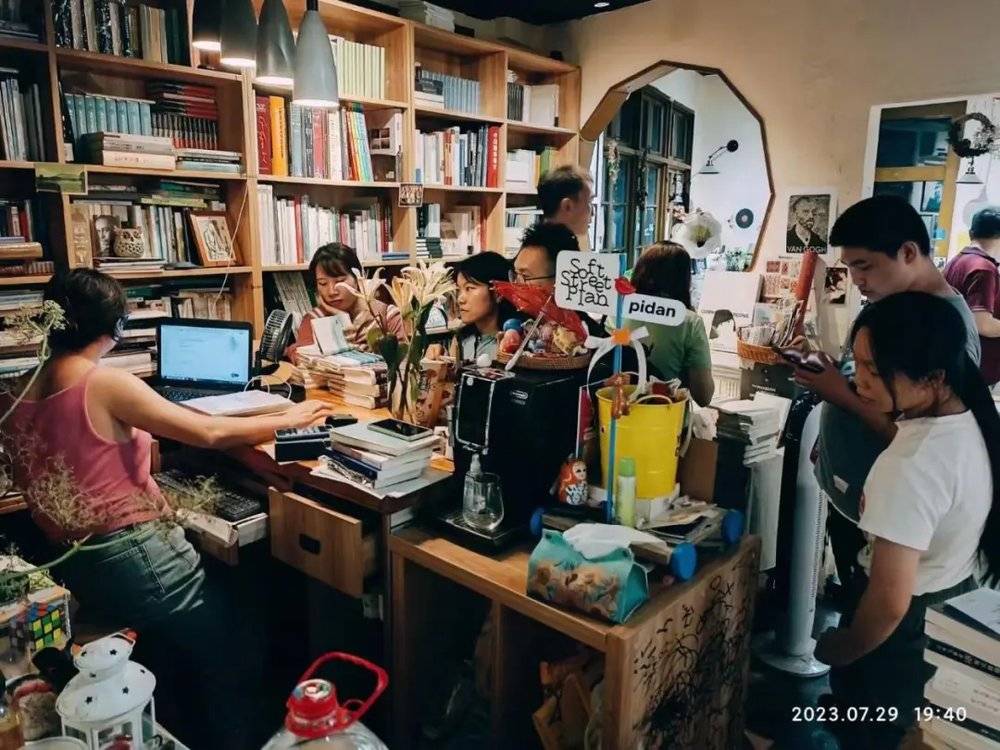 书店到处都堆满了书,没有地方落座;书店不卖咖啡,不卖文创。他们拒绝书店成为自习室、洽谈室,相反,在书店可以大声交流读书心得、荐书甚至读诗。有一次,江涛和客人聊书的时候,有客人说:「你们能小声点吗?」 江涛当即说,「不好意思,我们店里是可以有声音的」。