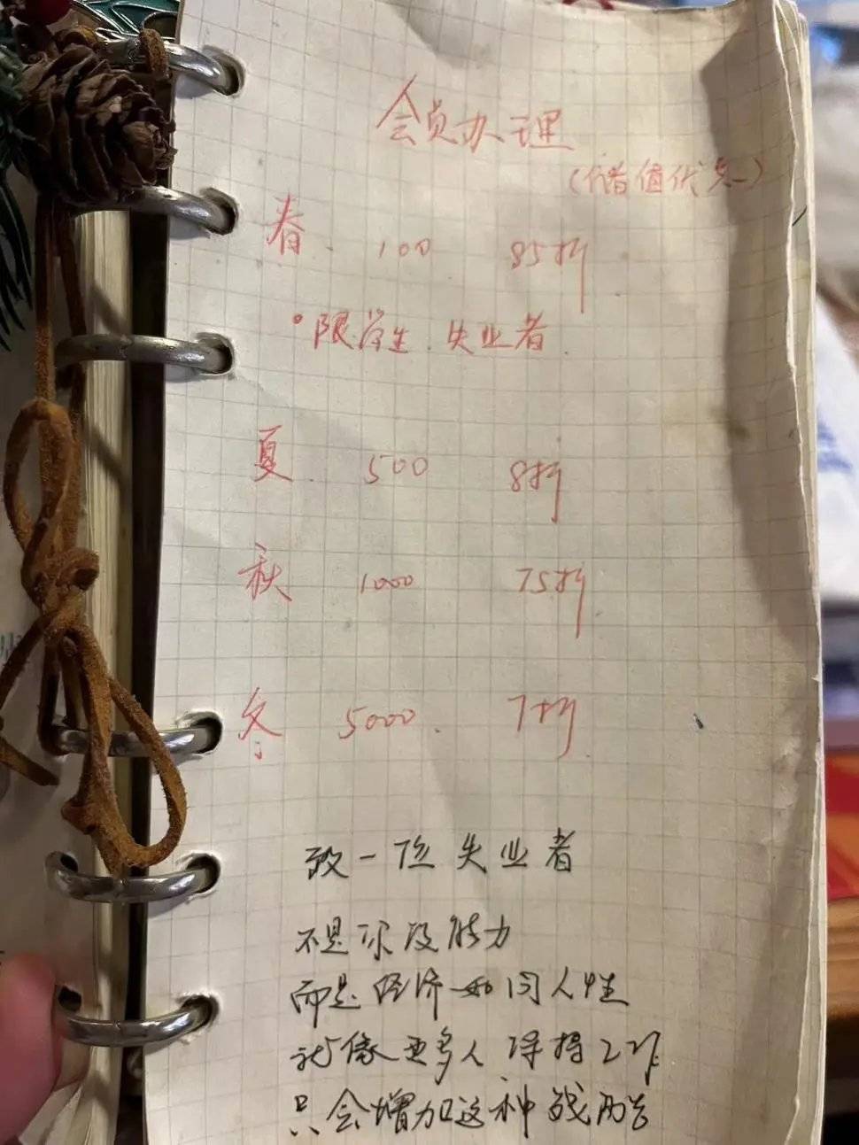 于是他们把这首诗抄在吧台的本子上,在原本的会员卡规则上加了一条:失业或者暂时找不到工作的人买书可以享受无门槛的 8.5 折优惠。