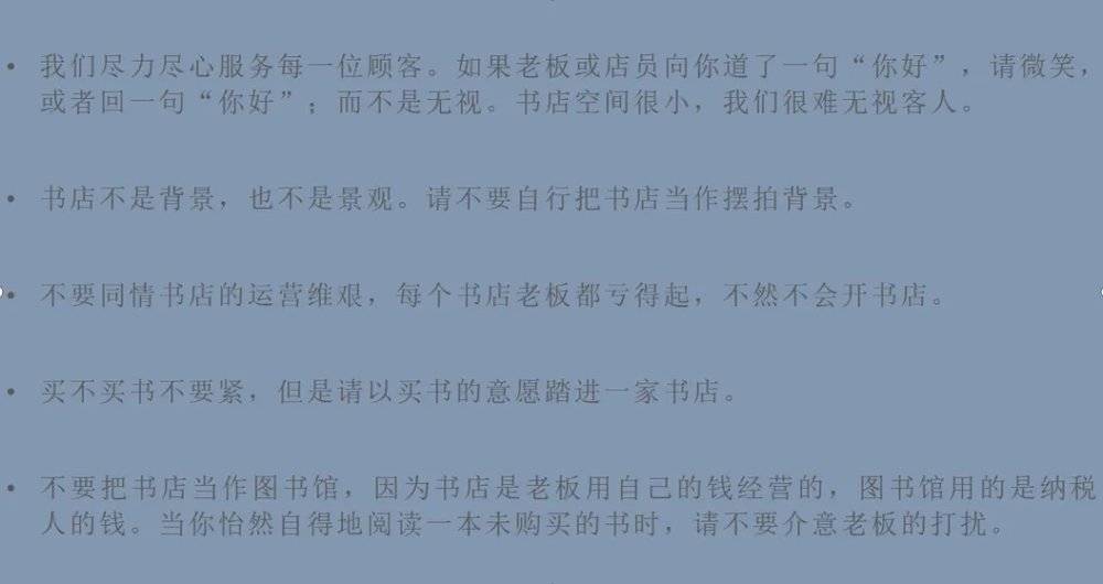 起初,他们花心思寻找更多客人,后来却又花更多精力劝退某些不合适的客人。江涛不擅长当面表达,便在公众号文章里写 《书店客人应有的礼仪》。