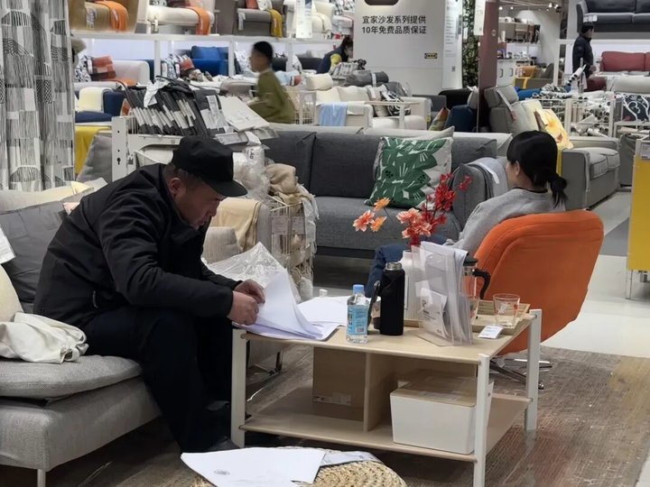 她注意到一个细节上的转变:以前宜家里人多,但多是夫妻、情侣,推着购物车,拿着卷尺反复测量尺寸,而现在,推车的人少了,更多是随便逛逛的一家三口、五口,沙发坐满了人,却未必有人下单。