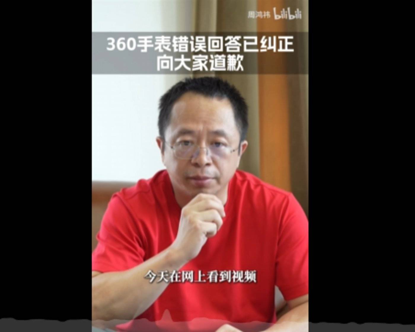 在回应 360 手表问题的时候,周鸿祎也是表情严肃,坐姿端庄。