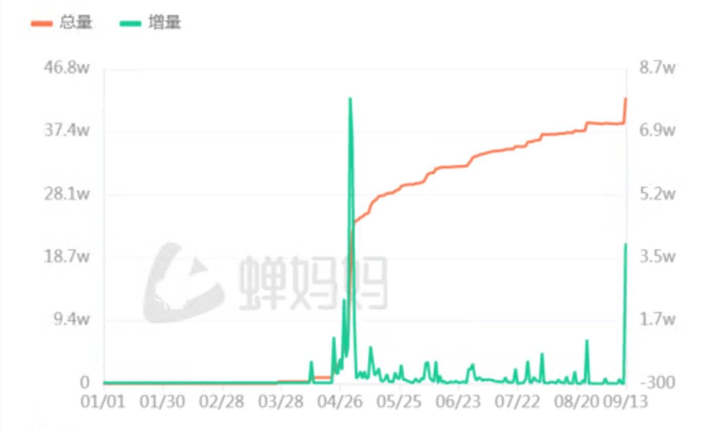 但很遗憾,截至 9 月 15 日,他的粉丝还没有达到 700 万,周鸿祎拍卖迈巴赫的 4 月 28 日当天,抖音粉丝上涨了 24 万,但下半年的两个半月里,他的粉丝也只上涨了 30 万。与此同时,雷军的粉丝仍然以每个月几百万的速度稳步增长,目前已经接近突破 3000 万。