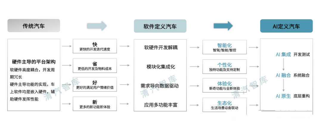 随着 AI 技术与智能汽车的不断融合,汽车行业正从“ 软件定义汽车” 向“AI 定义汽车” 的方向演进,从过去由软件主导汽车的功能特点、系统开发和软硬件更新,逐渐发展至由 AI 应用为汽车的高效开发与运行提供全方位支持。