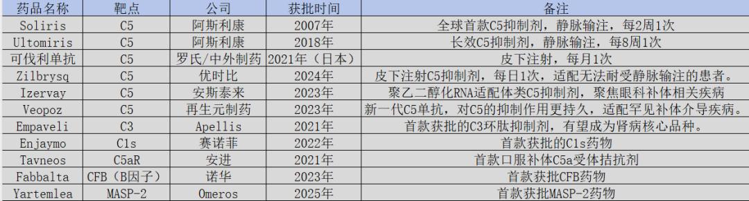 图:全球在售补体药物一览,来源:锦缎研究院