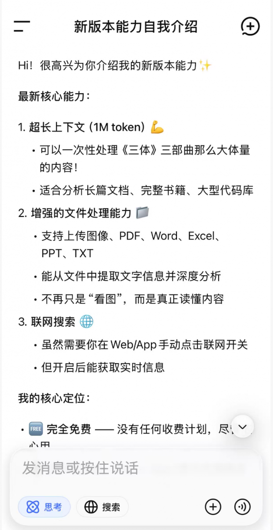 根据 DeepSeek App 的回答介绍,这次更新最核心的变化有几点: