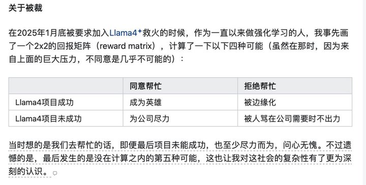 高级打工人对豪华福利也开始祛魅。被 Meta 裁掉的田渊栋在自己年终总结里这样说:「其实我也想过在公司十年多了,总有一天要离开,总不见得老死在公司里吧,但总是因为各种经济上和家庭上的原因还是要待下去。最近一两年的说话和做事方式,都是抱着一种 『公司快把我开了吧』 的心态,反而越来越放开。」