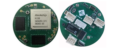 超小型 RK3588 算力模组,外形为圆形板,直径仅为 54mm,抛弃冗余功能,保留仅需要的端口,让体积和重量缩小到极限,极大的确保飞行的续航,并保证电路的稳定运行。外形上采用 3 层板叠加,并用螺钉紧固,确保飞机在恶劣的环境中飞行,颠簸而稳定工作。