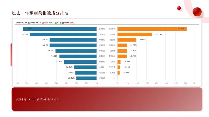 财通证券也认为,预制菜国标等的推进,有利于行业秩序的梳理,规范行业运作和下游使用,头部企业因其在研发、冷链、品控和资本方面的优势,将享受合规红利和市场份额提升的双重利好。持续看好餐饮供应链的产业机会,短期春节数据催化叠加经营趋势改善,中长期产业集中度提升。