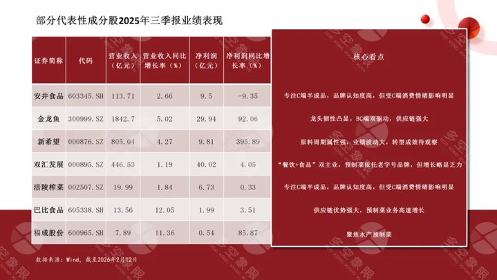 预制菜指数成分股 2025 年披露的业绩表现,清晰地展现了"冰火两重天"的企业分化。