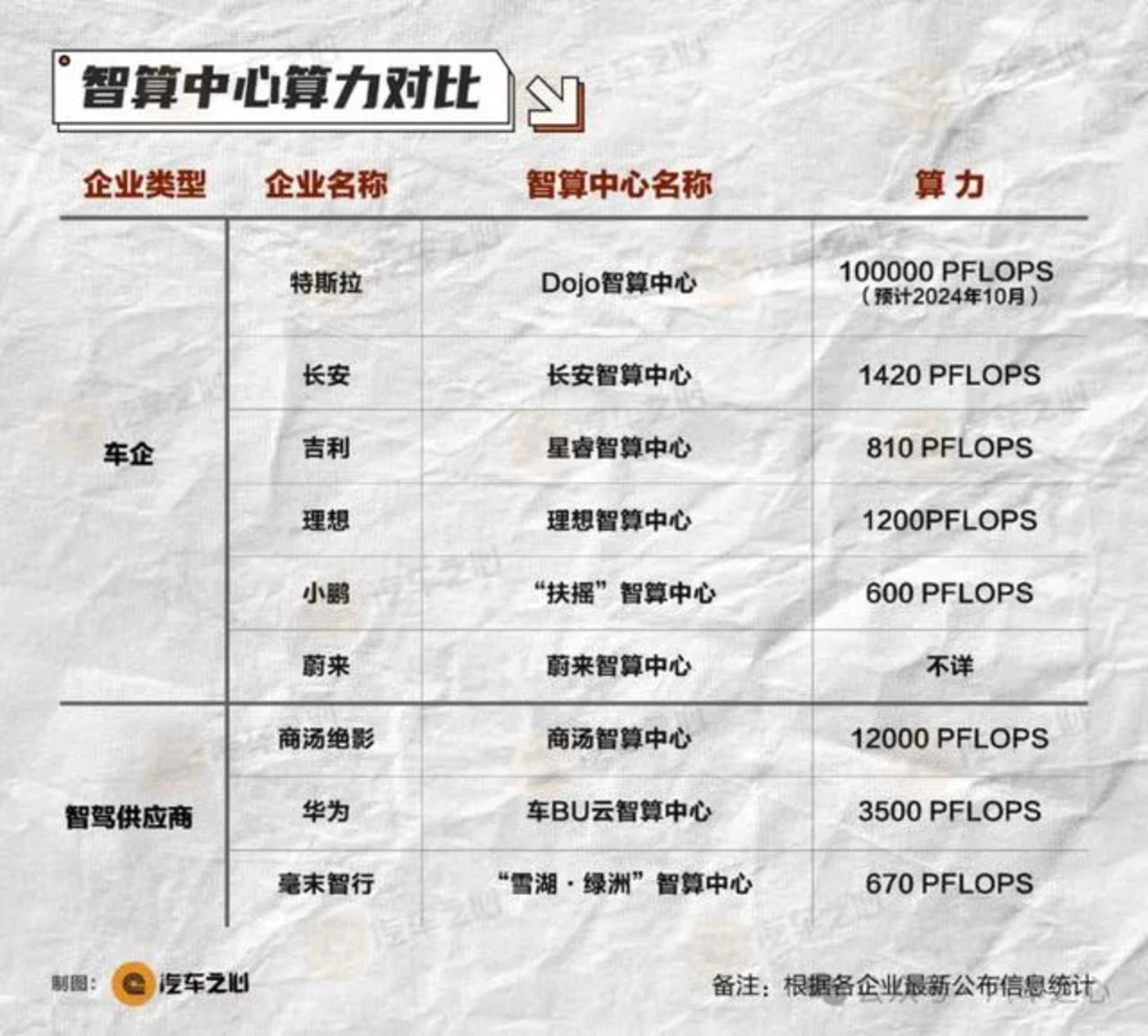 从国内的情况来看,以 「蔚小理」 为代表的造车新势力,连同吉利、长安等老牌造车企业,或选择自建、或与第三方合作筹备智算中心。如蔚来与腾讯合作建立了智算中心,虽然暂未公布其超算中心的具体实力,但李斌曾用 「丧心病狂」 一词来形容蔚来在算力方面的布局,并称在未来一两年内都还会是全球天花板;