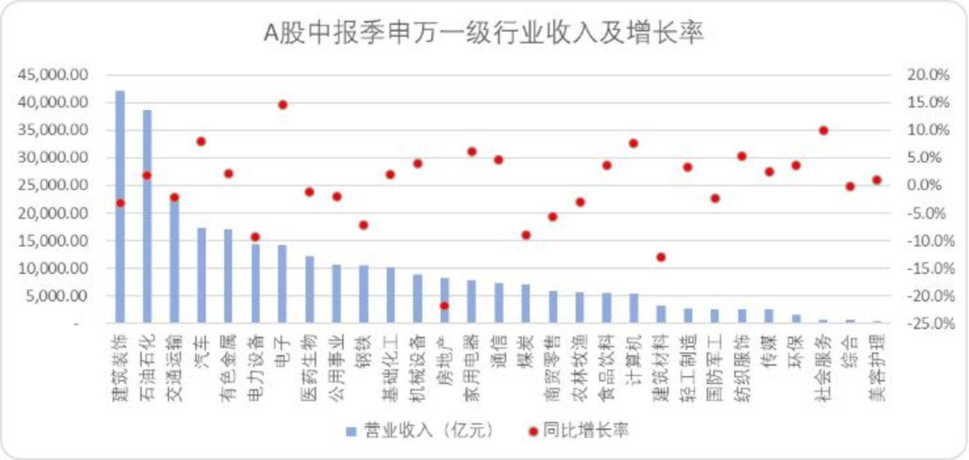 图: 中报季申万一级行业收入及增长率,来源: Choice 金融客户端,锦缎整理