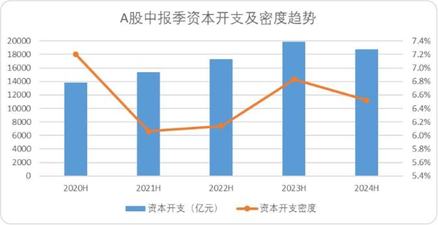 图: A 股中报季资本开支及密度趋势,来源: Choice 金融客户端,锦缎整理