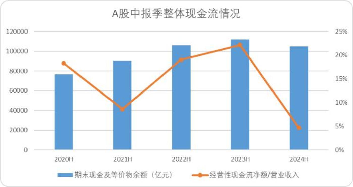图: A 股中报季整体现金流趋势,来源: Choice 金融客户端,锦缎整理